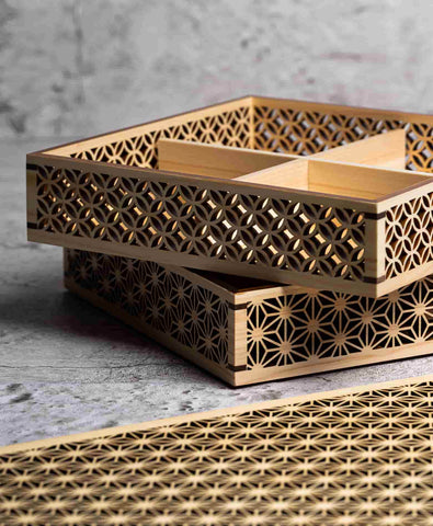 ヤマコー ひのき細密盛器 麻の葉 四ツ切