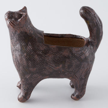 作家 小國美智子 フラワーベース(植木鉢) 白猫
