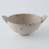 耳付きのデザインが温かみを感じさせてくれる鉢。少しグレーがかった優しいお色味に鉄粉の表情が味わい深いうつわです。しっとりとしたマットな質感で手にもよく馴染みます。 具たくさんスープに、鍋の取り鉢、サラダやデザートなど用途の広い器です。